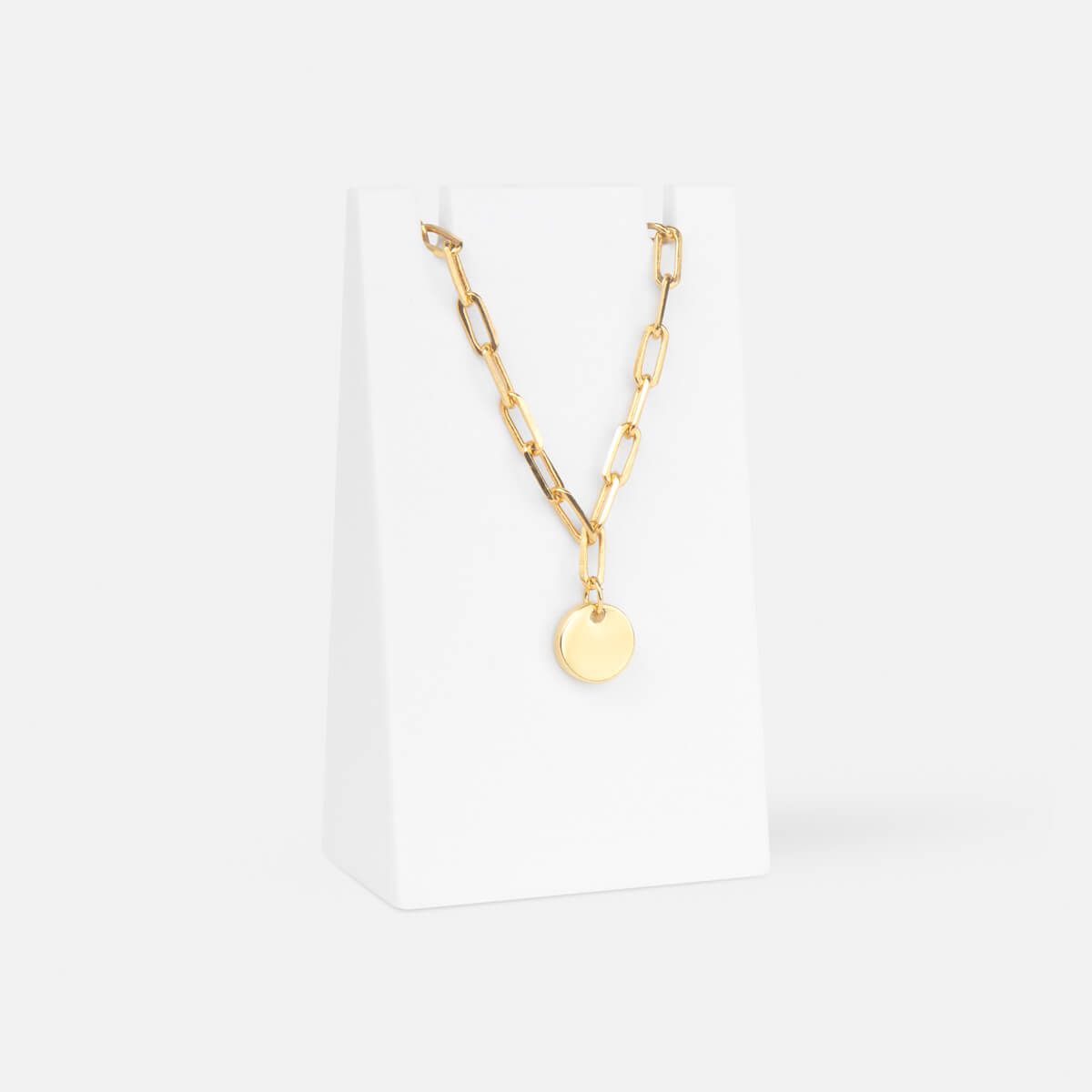 Pulsera con dije circular. Placa para grabado. Cadena base de latón de 16?cm + extensión de 3?cm, ambos con chapa de oro de 1?g. Dijes y placa de marca fabricados en metal zamac, también con chapa de oro de 1?g. Instrucciones de cuidado: Limpiar con un paño seco. Evitar contacto con el agua o productos químicos. No dormir, ni bañarse con la pieza. Incluye caja individual.