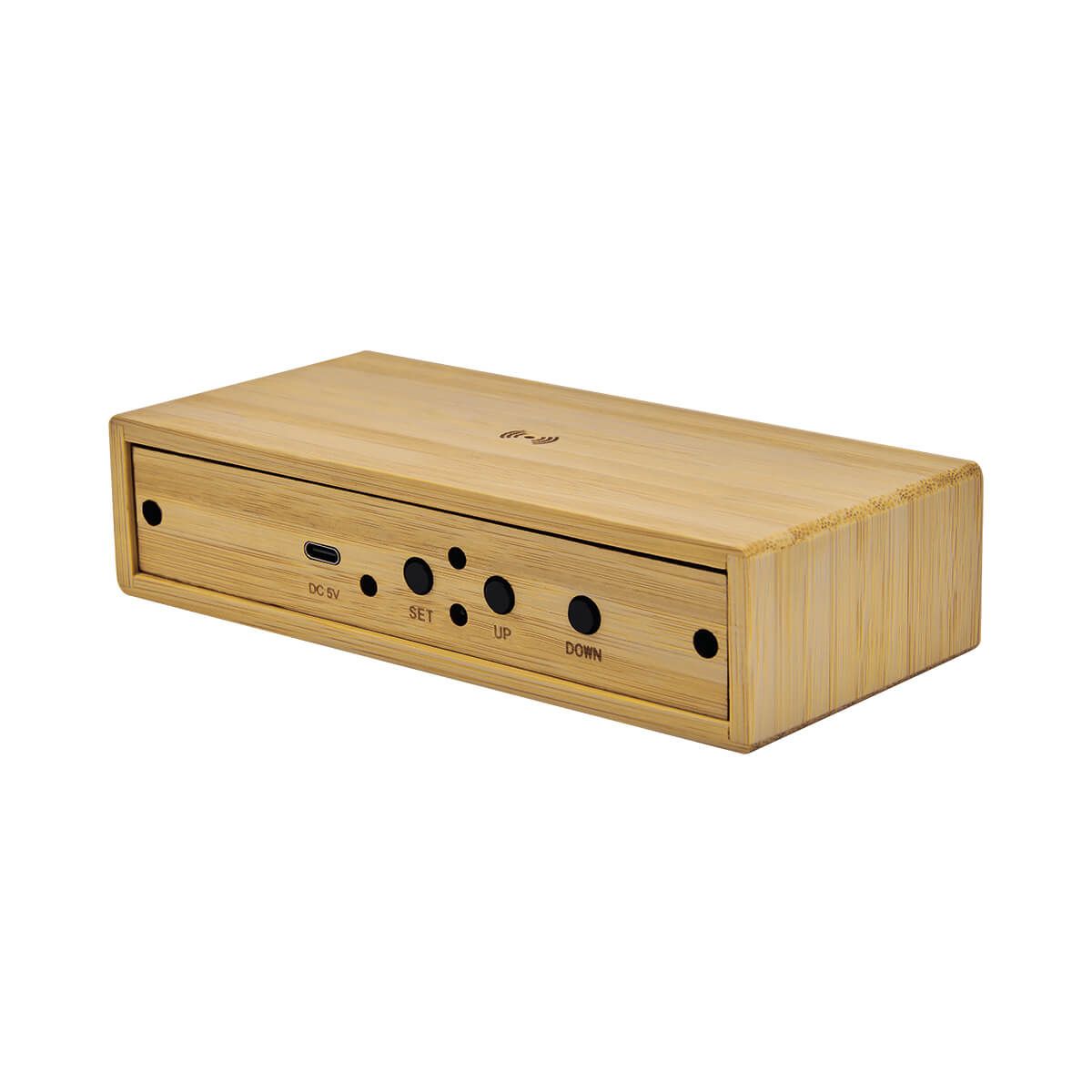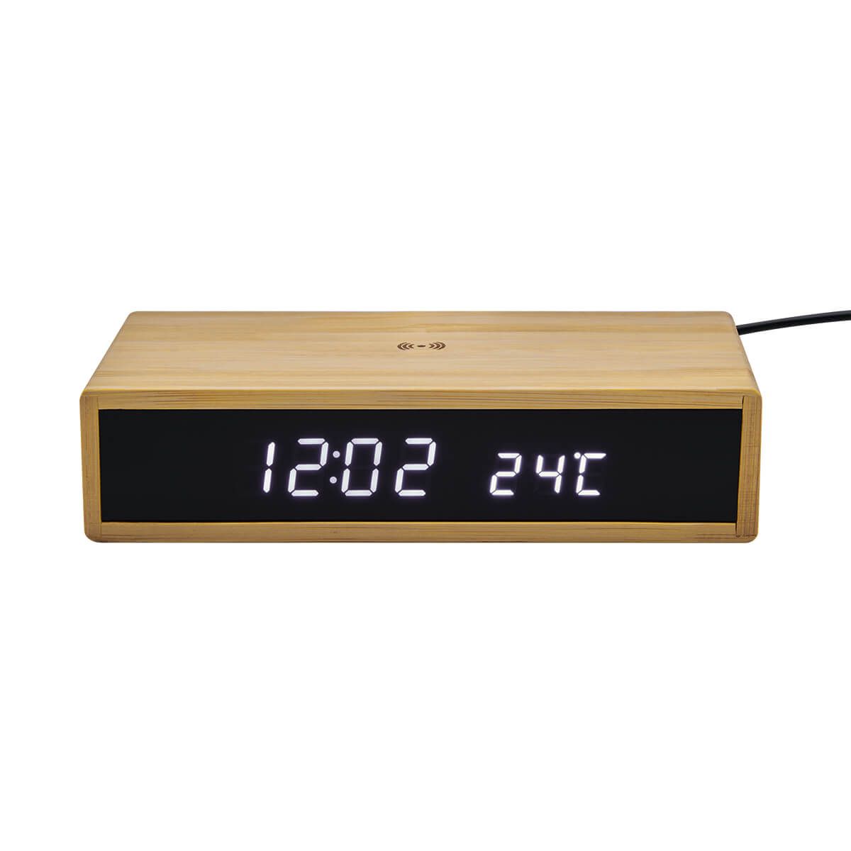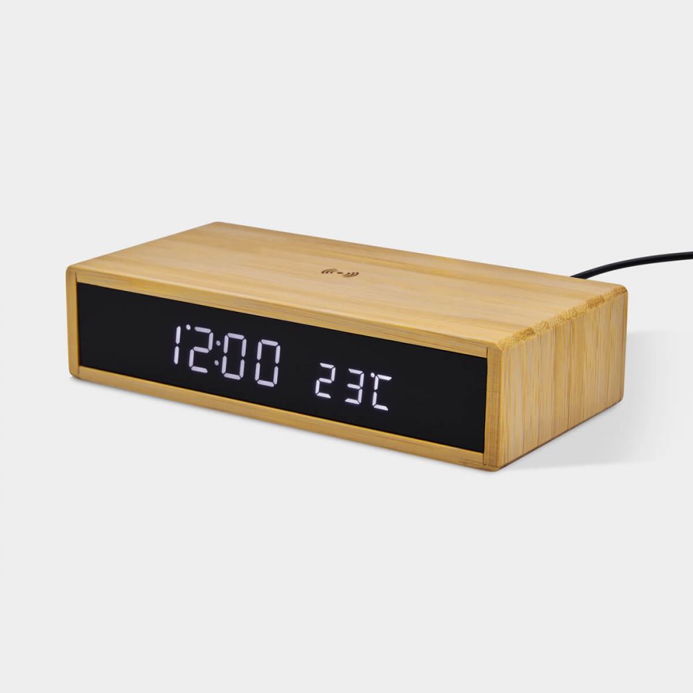 Reloj digital con carga inalámbrica de 10W. Display indicador de hora y temperatura. Tres modos de display para elegir y 4 niveles diferentes de brillo. Función de alarma. Carga por medio de cable tipo C incluido (1 m de largo). Este producto por ser últimas piezas puede presentar alguna variación, no se aceptan devoluciones.