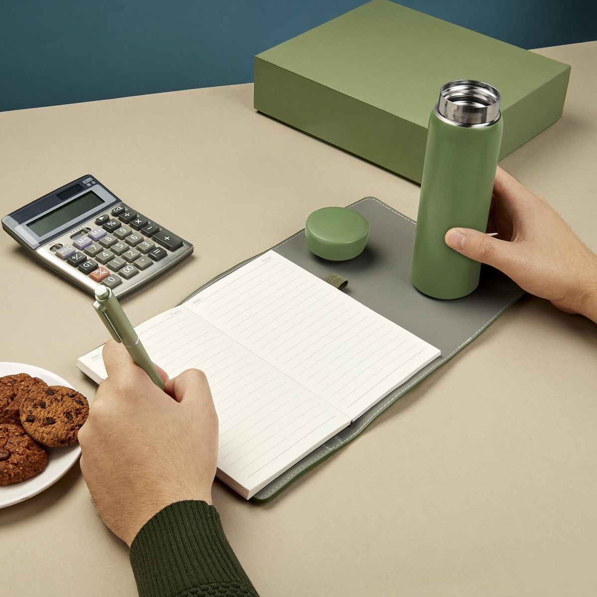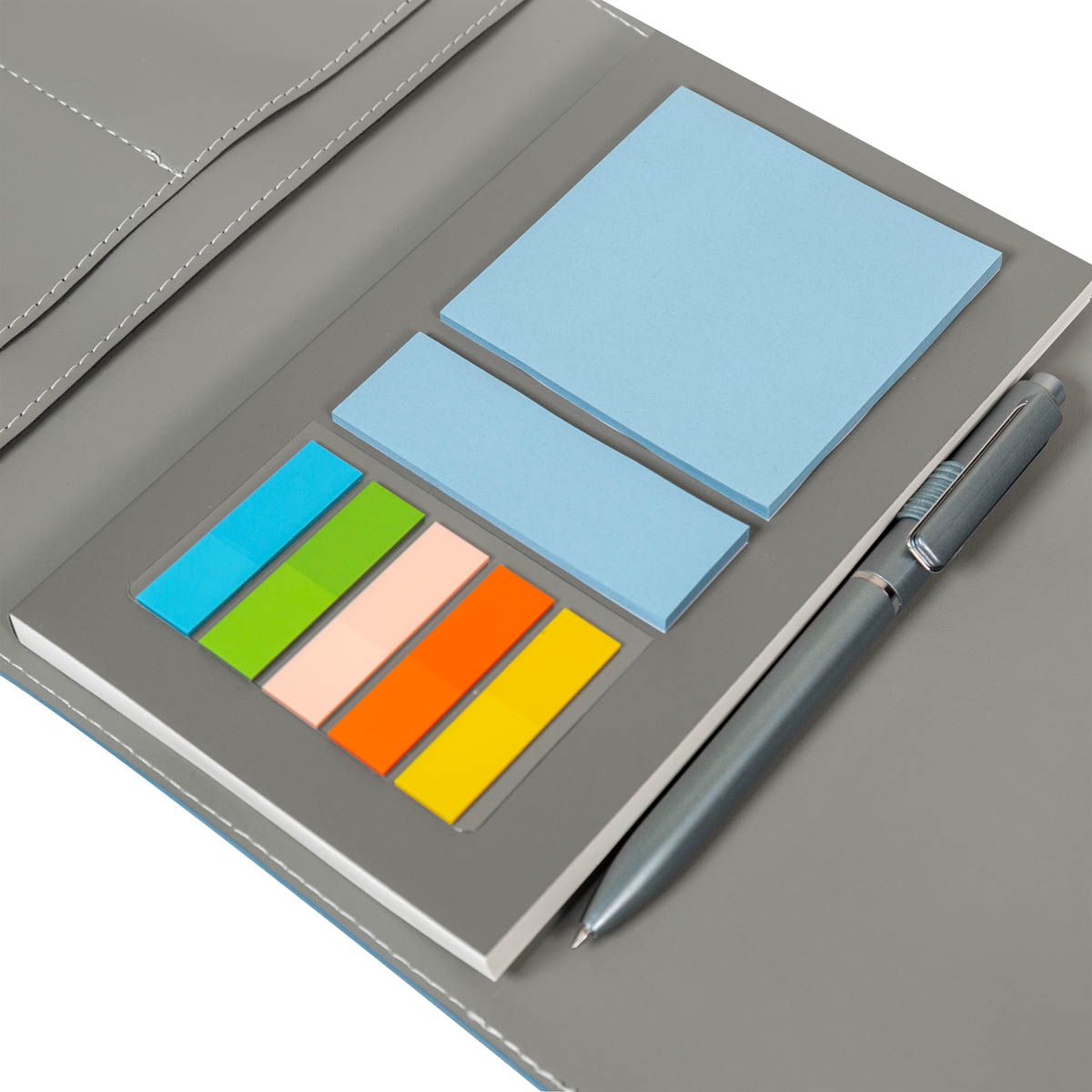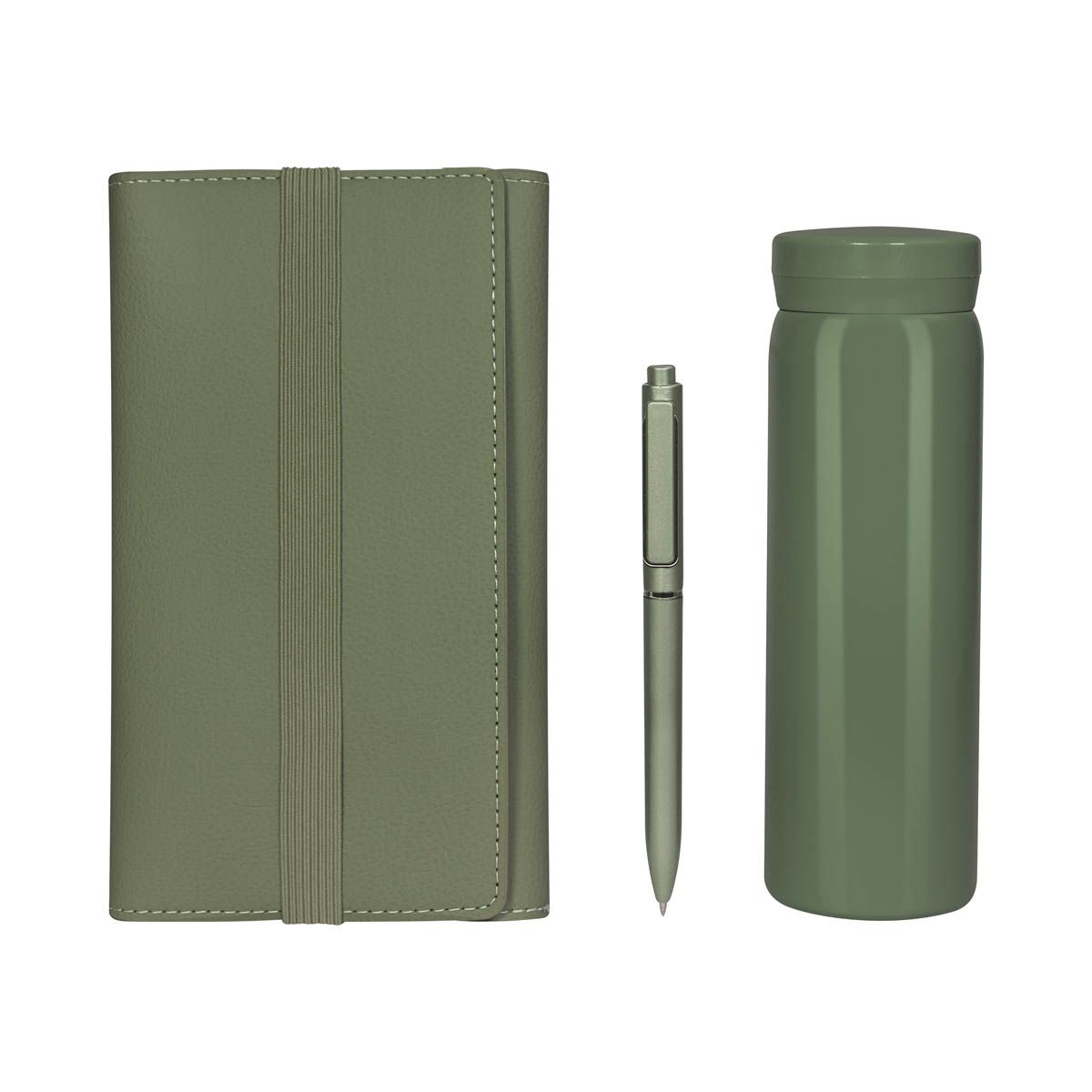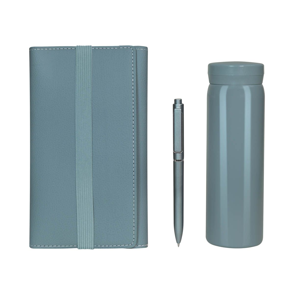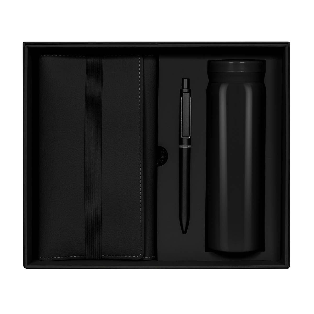 Set de regalo. Incluye: termo de doble pared metálica con tapa de plástico con sistema de rosca, bolígrafo de plástico con sistema push, libreta con pasta de curpiel suave con cierre de elástico y 70 hojas a rayas, al interior de la libreta incluye dos bloques de notas adhesivas y 5 banderines, además de agregar compartimentos para tarjetas o pequeños documentos. Presentado con atención al detalle en un empaque de calidad y mucho color, este set es el regalo perfecto para cualquier ocasión especial.
