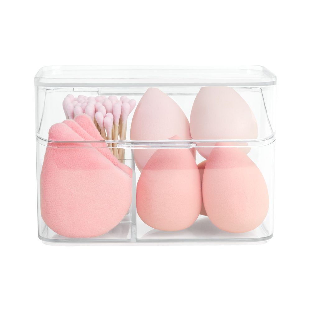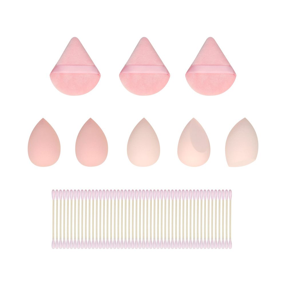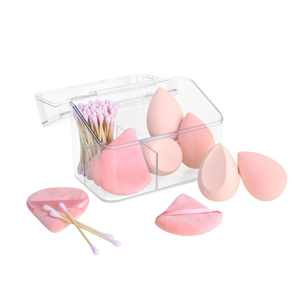 Estuche con set de aplicadores. Incluye 5 aplicadores de esponjas de látex perfectos para bases y correctores, 3 pufs de poliéster para polvos que garantizan un acabado uniforme y profesional, y 50 cotonetes de madera ideales para detalles y retoques. Su estuche esta diseñado para mantener todo organizado.