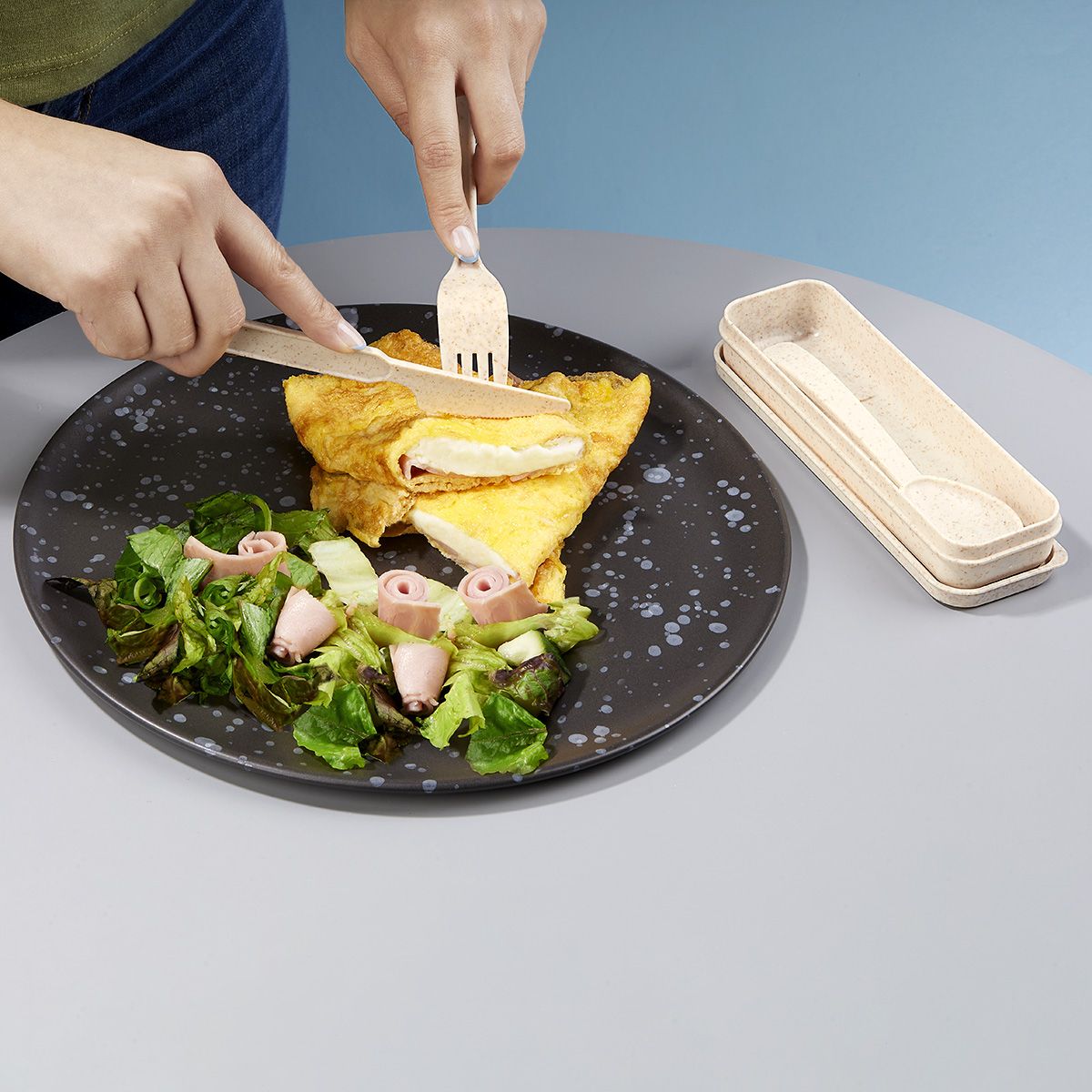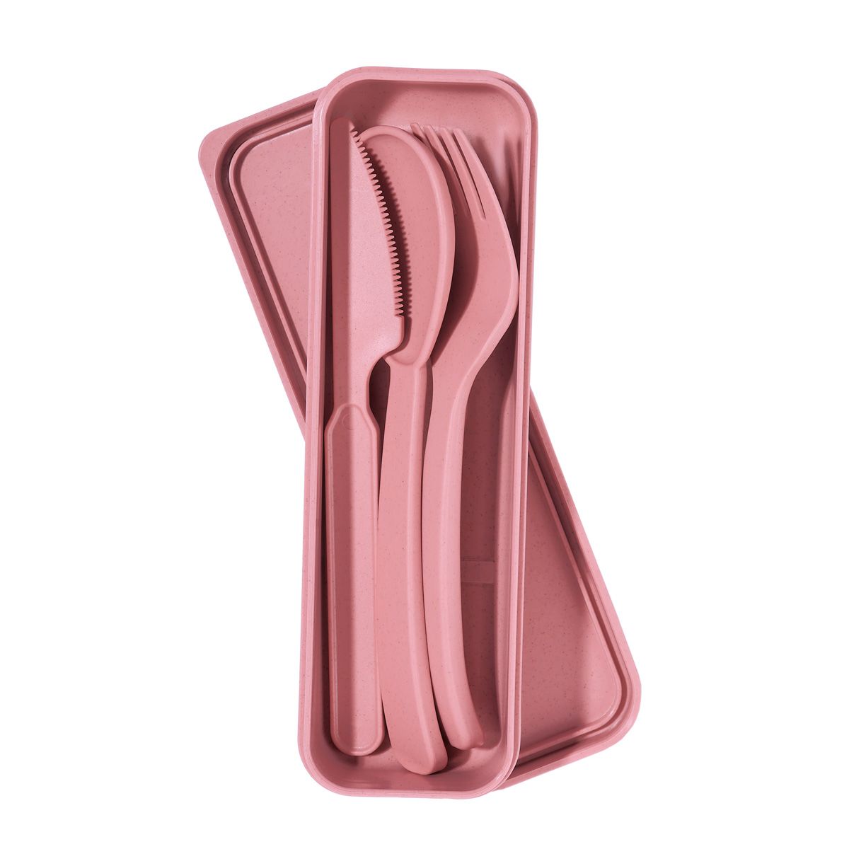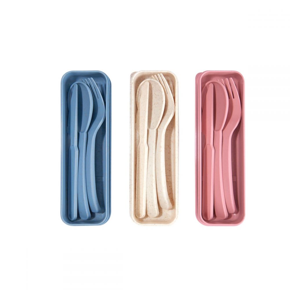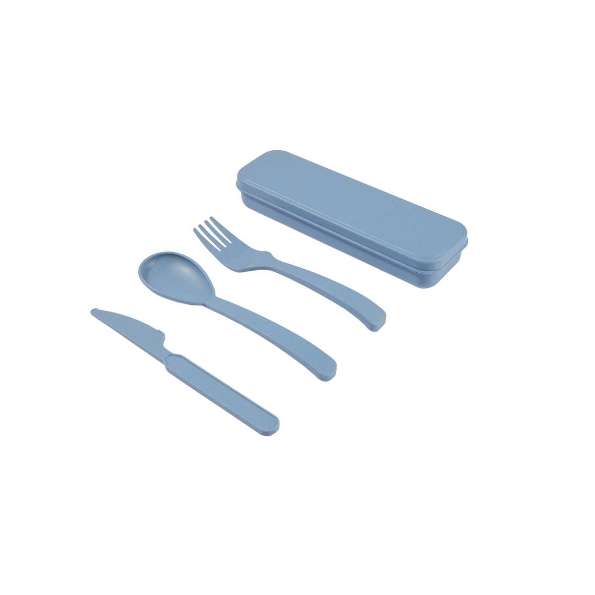 Set de cubiertos portátil material eco-friendly. Contiene cuchara, tenedor, cuchillo y estuche de almacenamiento. Liviano y fácil de transportar. Adecuado para lonchera escolar, almuerzo de trabajo, viajes etc.