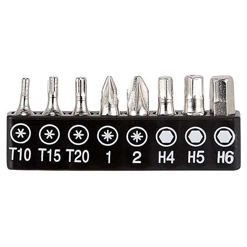Contiene desarmador con 16 puntas y 8 dados diferentes e intercambiables. Incluye estuche.