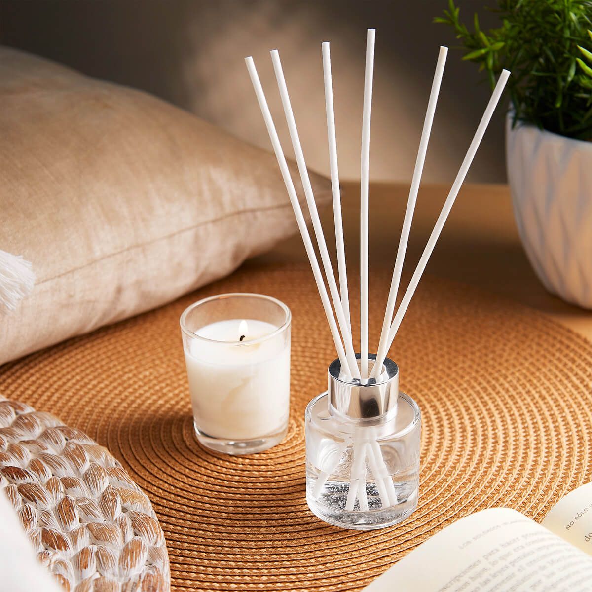 Crea un ambiente de serenidad y bienestar en tu hogar este set de vela y esencia. Incluye una vela aromatizante que llena cualquier espacio con una fragancia envolvente, y una esencia ambiental con 6 varillas que dispersan un aroma sutil y duradero a lo largo del día. Ambos con aroma a vainilla. Incluye caja de regalo ecológica.