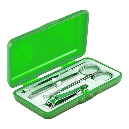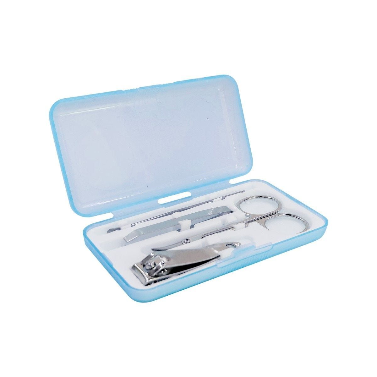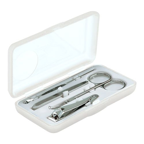 Set con 1 tijeras, 1 pinza para cejas, 1 corta uñas y 1 retira cutícula. No para uso profesional.