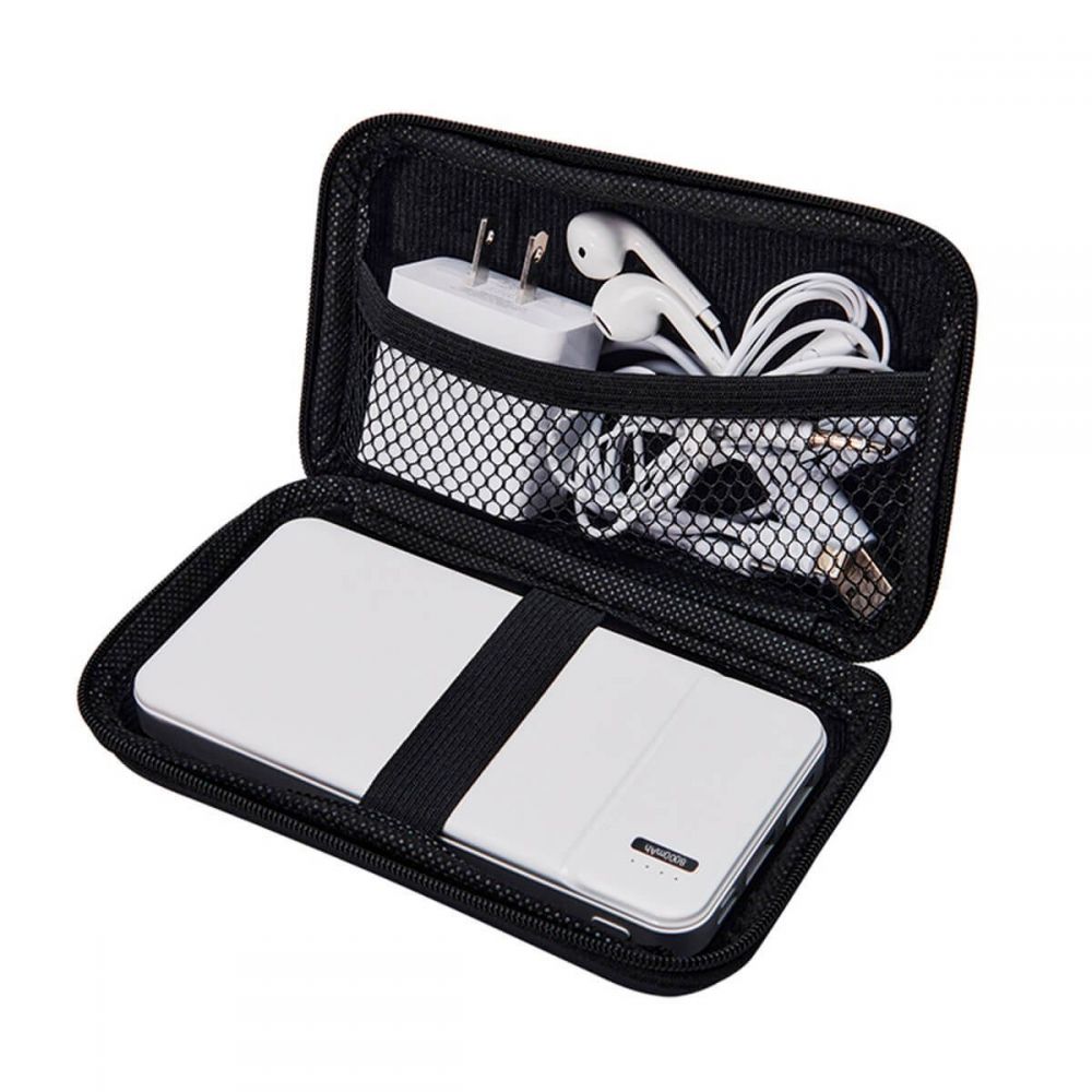 Incluye batería auxiliar para smartphone de 8,000 mAh con 2 puertos de carga micro USB y tipo C, 2 puertos USB y 4 LEDs para indicar nivel de carga, cargador de pared con entrada USB, audífonos con control de volumen y función play/pausa, cable cargador USB con entradas micro USB, tipo C y lightning. Incluye estuche con cierre.