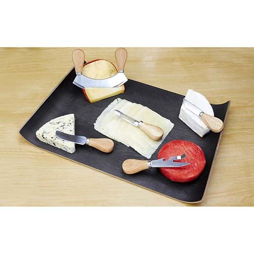 Set con 5 cuchillos para quesos y estuche. Incluye caja individual. La madera es un producto natural el cual puede presentar variaciones en tonalidades y vetas.