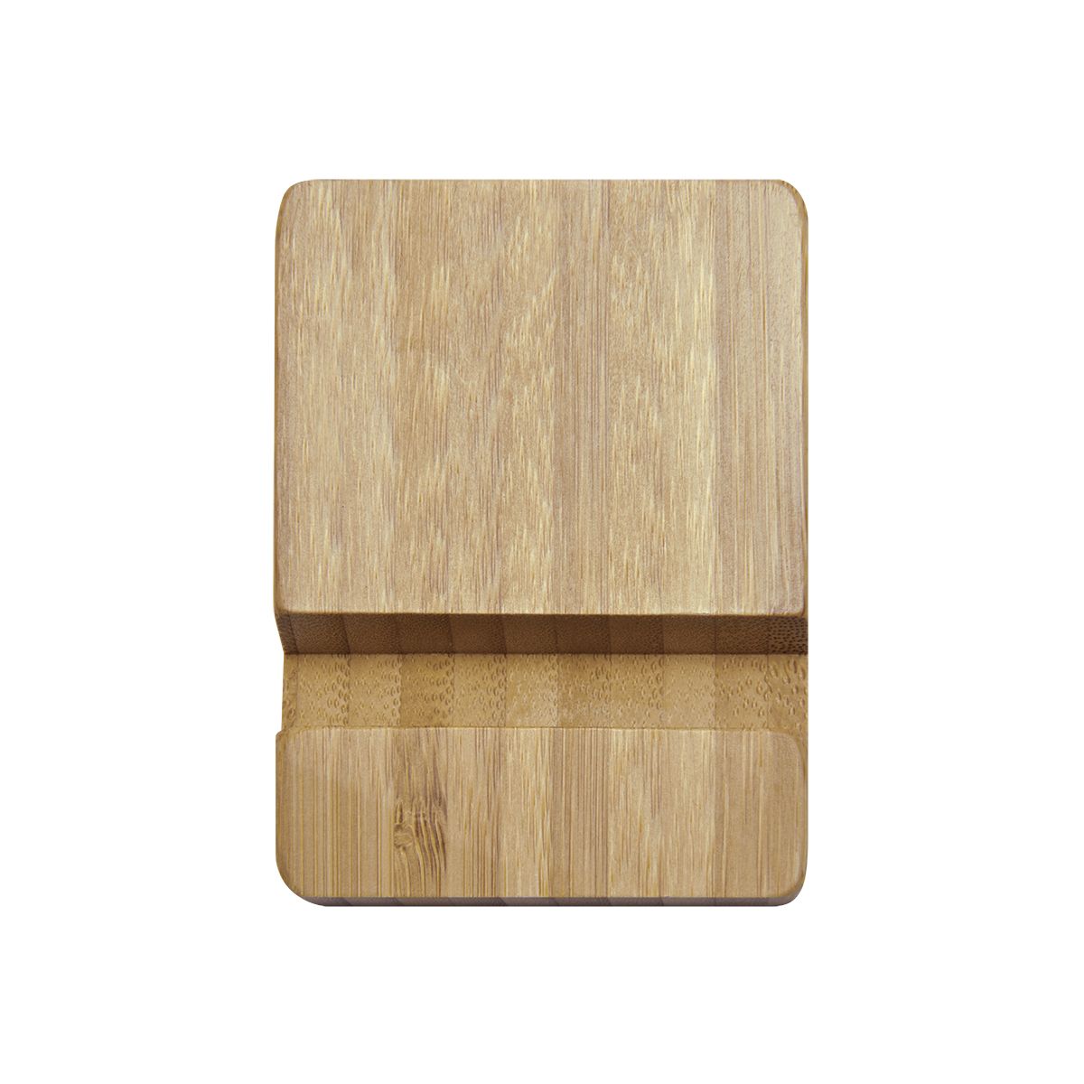 Soporte de bambú para smartphone o tablet. Incluye dos ranuras con diferente grosor para adaptarse a diversos dispositivos. El bambú es un producto natural el cual puede presentar variaciones en tonalidades y vetas.