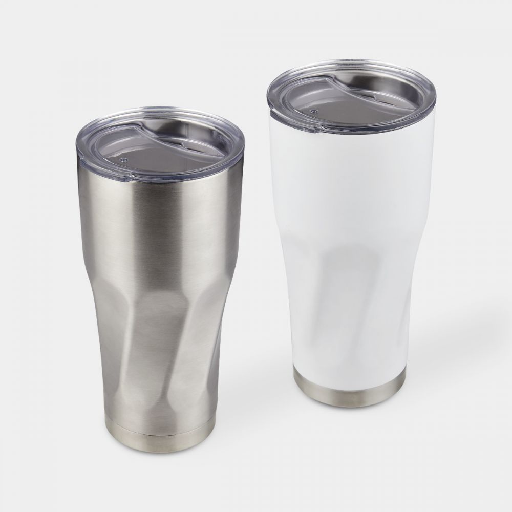 Doble pared. Cerrado al vacío. Pared interna y externa acero inoxidable. Tapa de plástico con ranura. Mantiene temperatura caliente 6 hrs y temperatura fría 8 hrs aproximadamente. Incluye caja individual.
