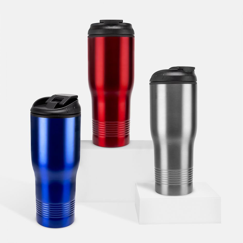 Doble pared. Pared interna plástico, pared externa acero inoxidable. Tapa de plástico con boquilla y sobre tapa de cierre a presión. Incluye caja individual. Este producto por ser últimas piezas puede presentar alguna variación, no se aceptan devoluciones.