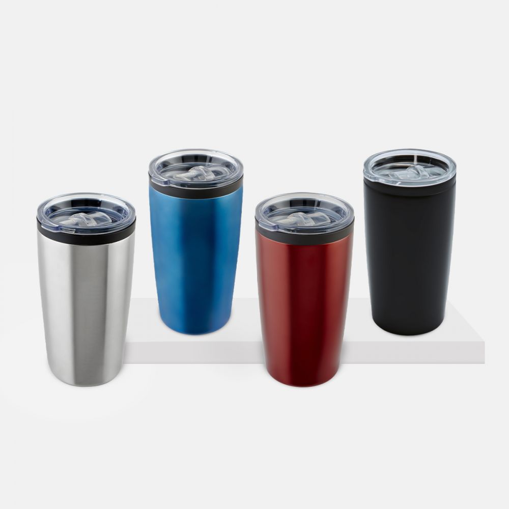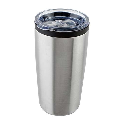 Doble pared. Pared interna plástico, pared externa acero inoxidable. Tapa de plástico con válvula de seguridad. Incluye caja individual.