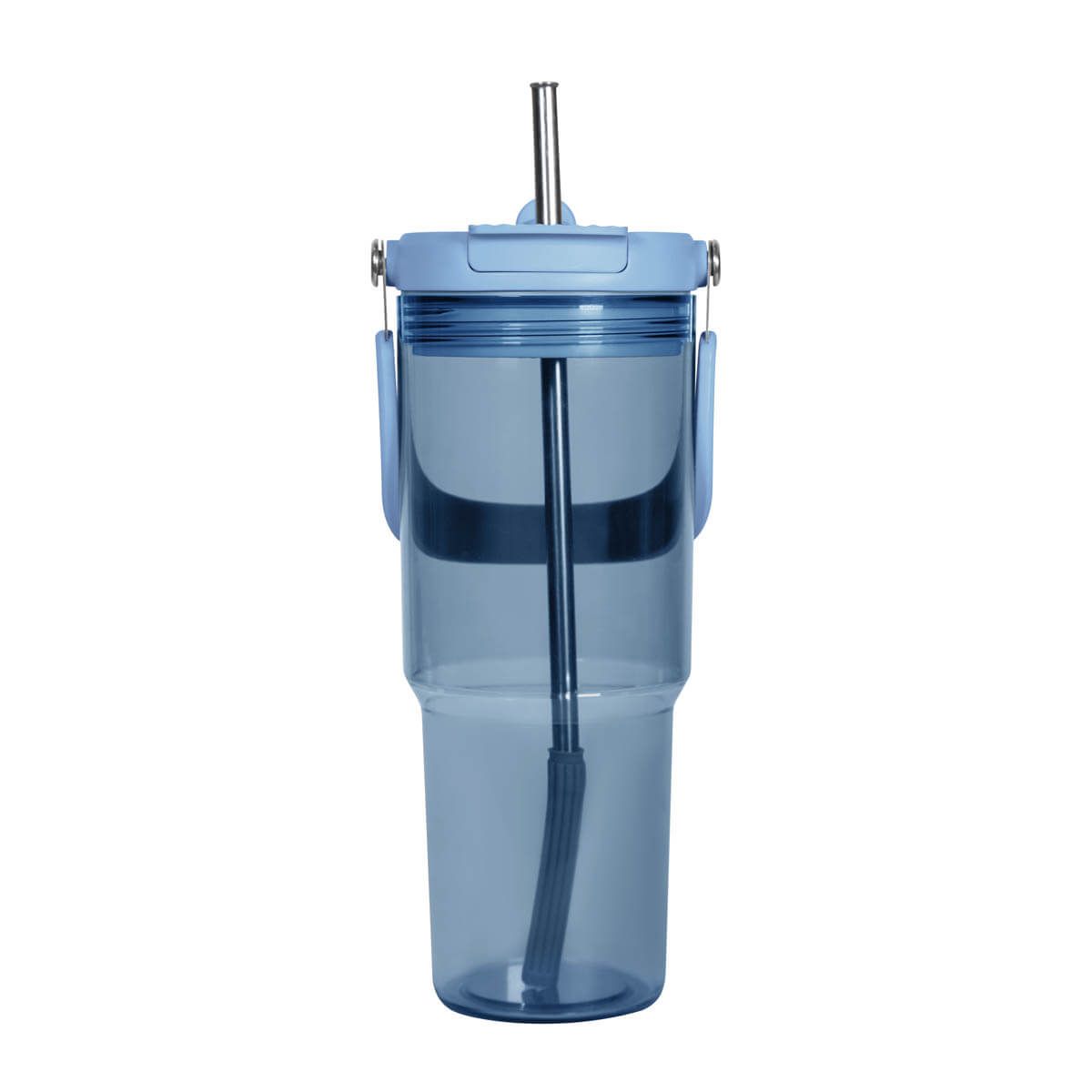 Termo de plástico de una pared. Incluye tapa con cierre de rosca que ofrece dos alternativas de uso, sobre tapa con sistema push y ranura especial para popote con aditamento para cerrar y evitar derrames. Incluye popote metálico que cuenta con un mecanismo de salida automática y una base de silicón, que lo eleva al abrir el compartimento. Además, su práctica asa plegable, permite llevarlo cómodamente a cualquier lugar. Capacidad 28 Oz. Base de 7 cm de diámetro. Incluye caja individual.