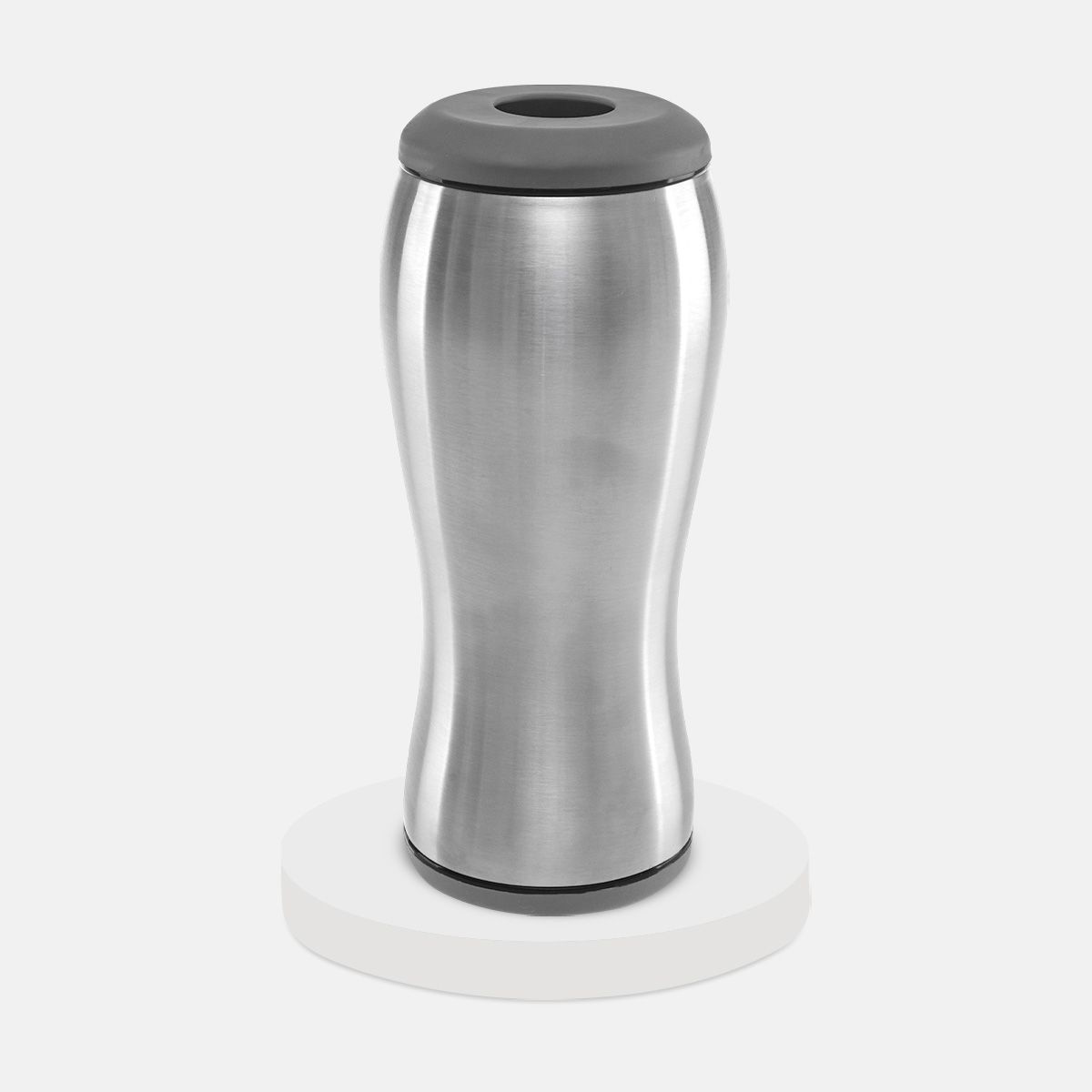 Doble pared. Pared interna y externa acero inoxidable. Tapas intercambiables para lata o botella. Mantiene la bebida fría. Incluye caja individual.