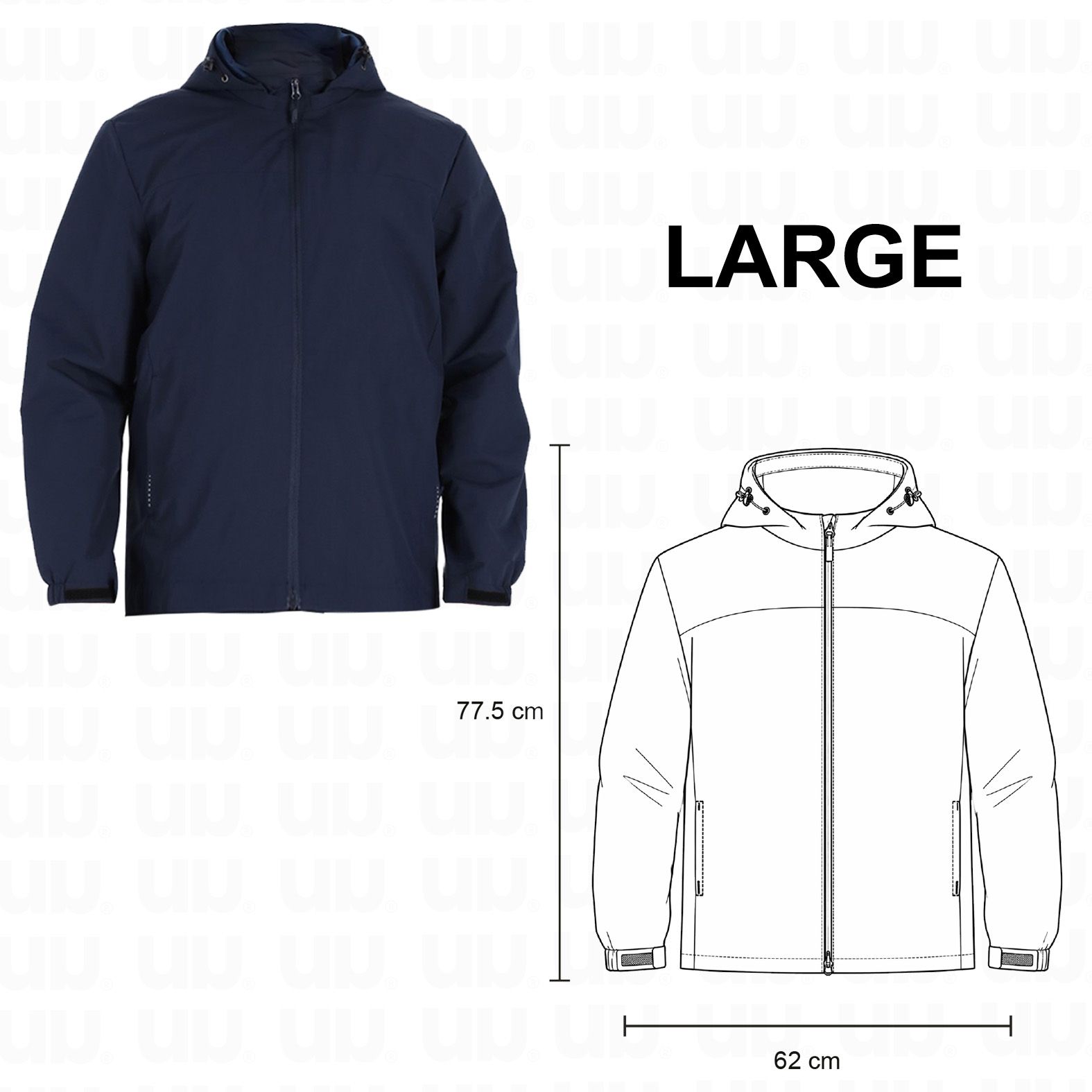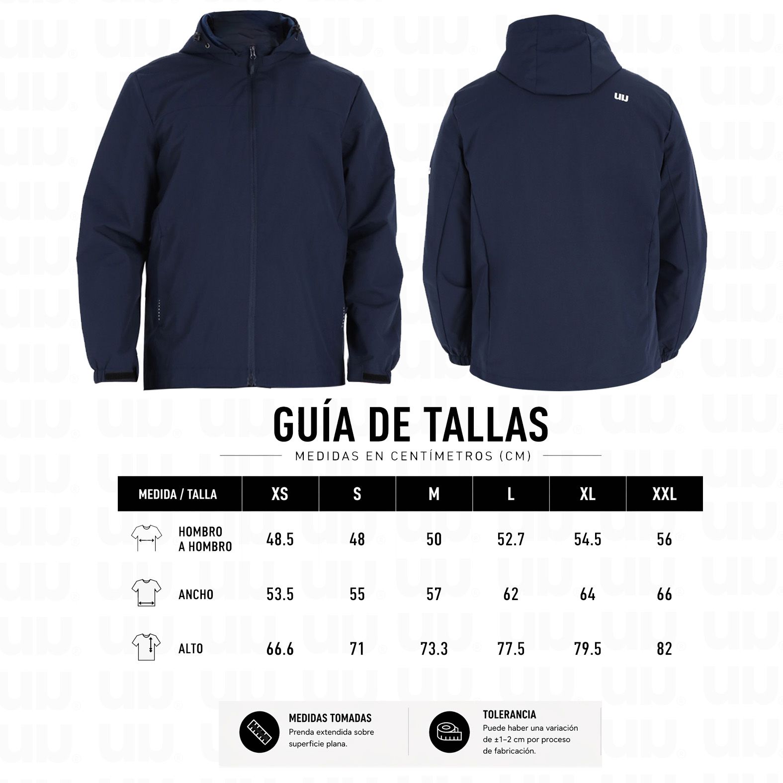 Chamarra con forro, bolsa interna, mangas ajustables y gorro ajustable con cordones. (No es impermeable).