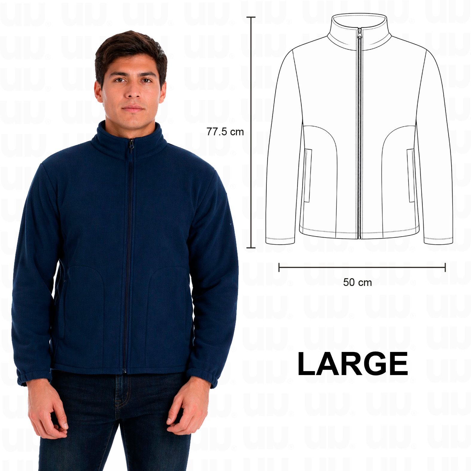 Chamarra polar con cierre y bolsas laterales.
