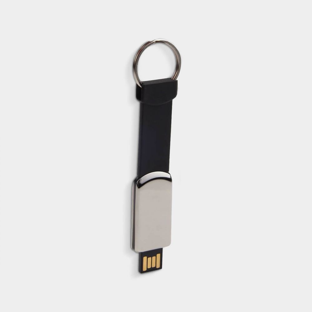 Unidad de memoria USB para transmisión de datos, con diseño retráctil. Incluye argolla para llaves y caja individual.