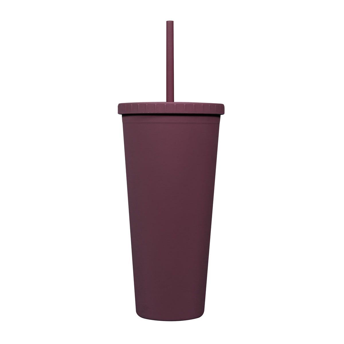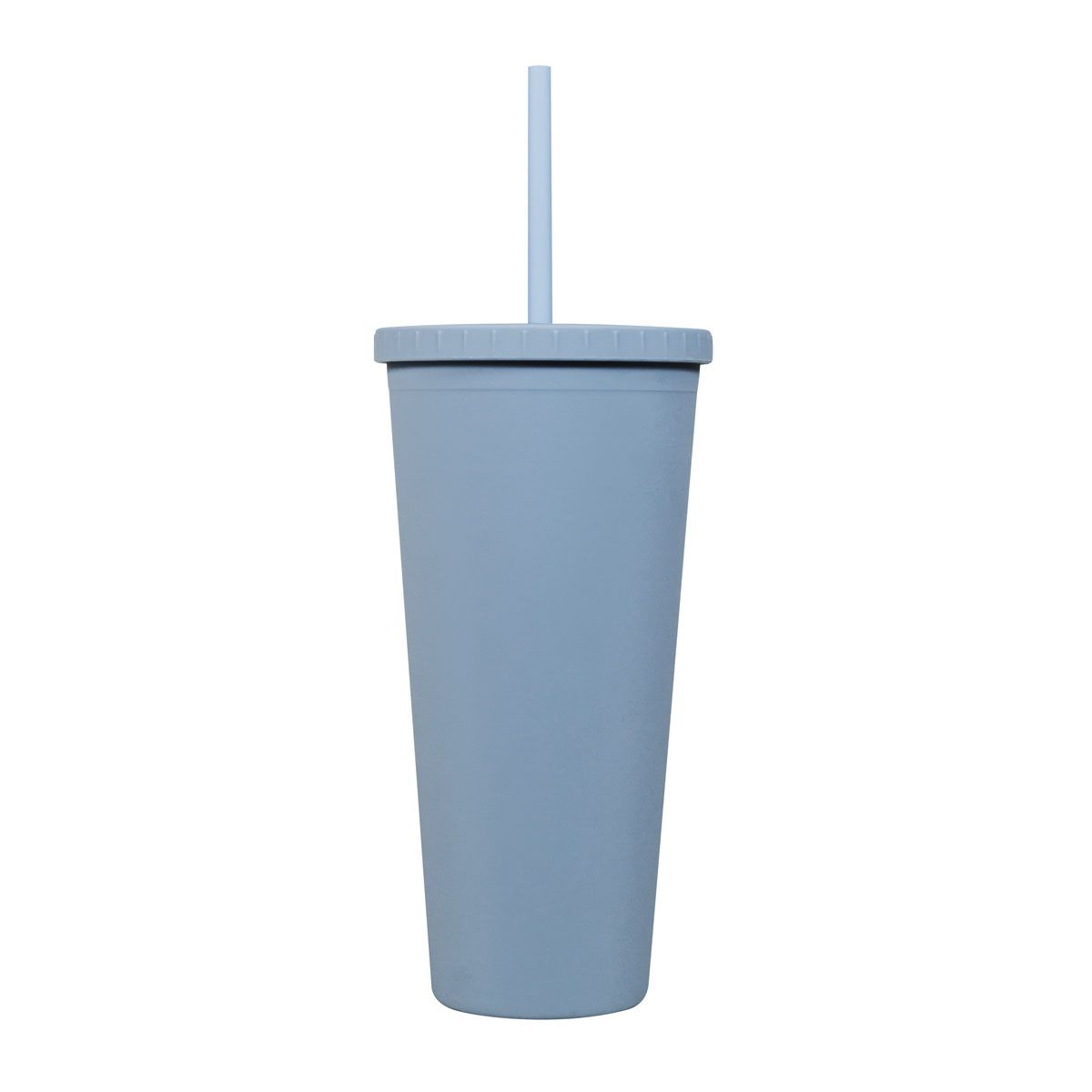 Doble pared. Pared interna y externa de plástico. Tapa de plástico con sistema de rosca. Incluye popote. Cuerpo y tapa con terminado tipo rubber. Capacidad 22 Oz. Base de 6.6 cm de diámetro. Caja individual incluida.