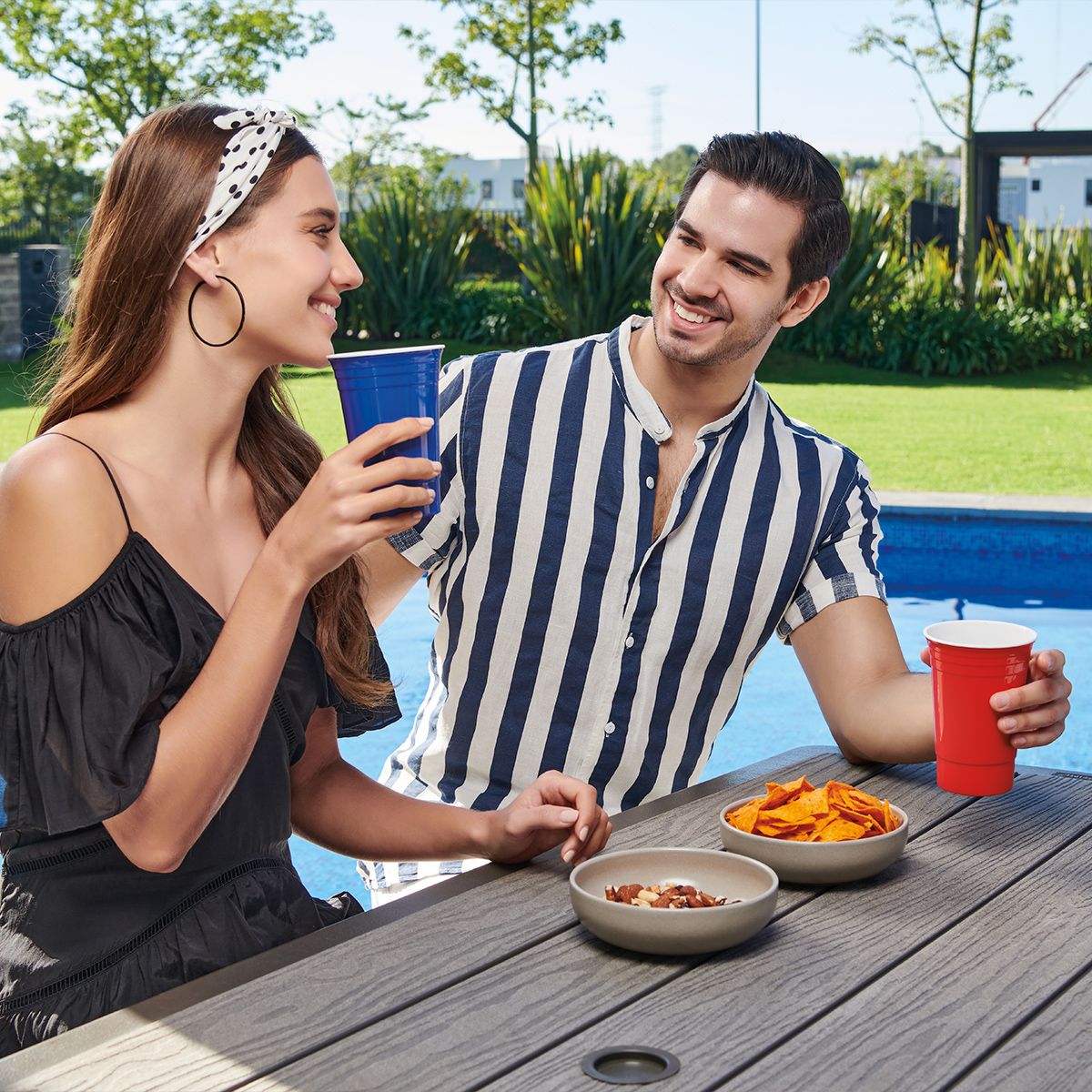Vaso de plástico doble pared. Interior color blanco.