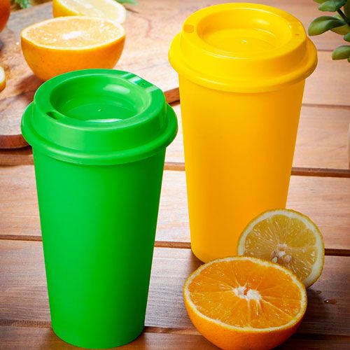 Vaso de plástico. Incluye tapa con ranura.