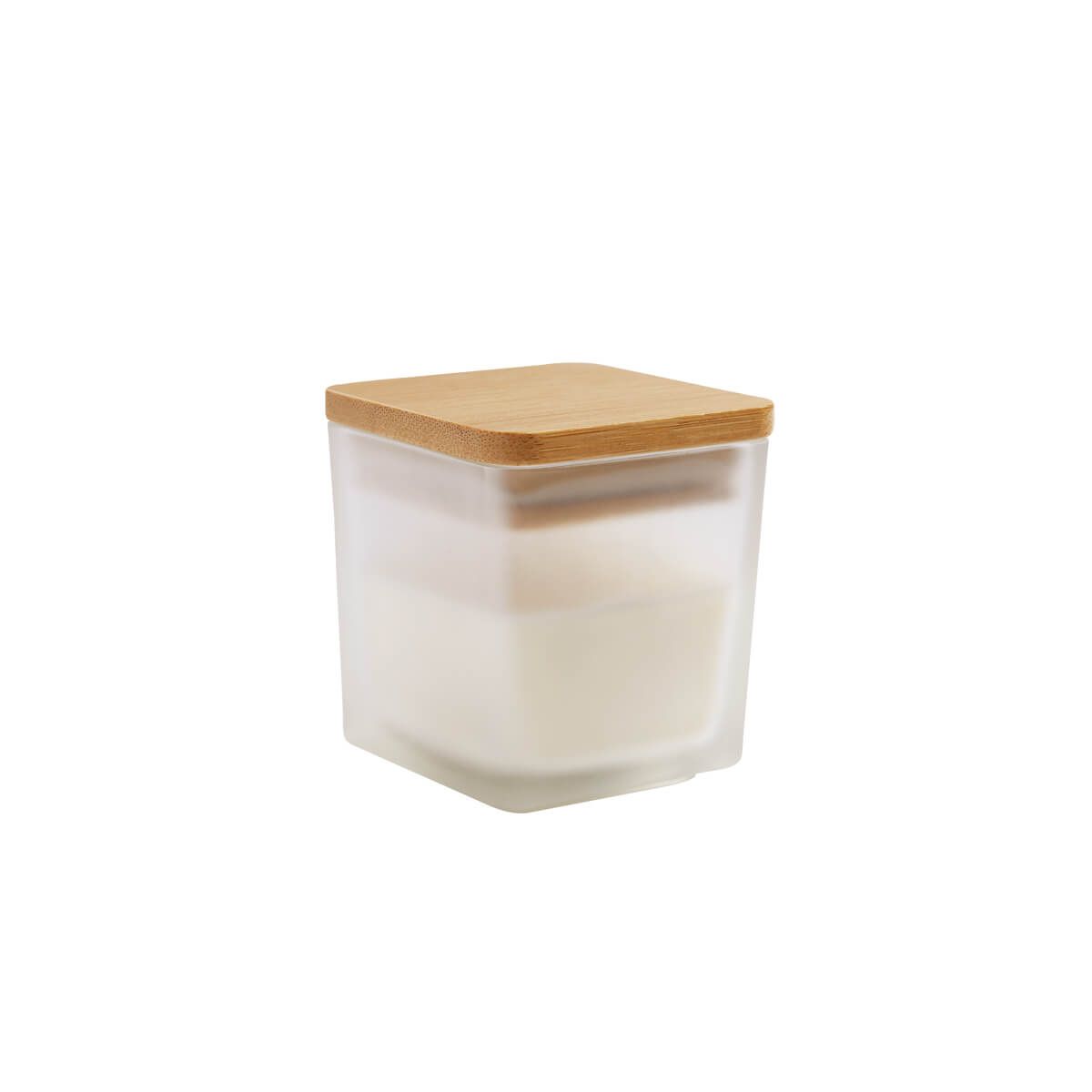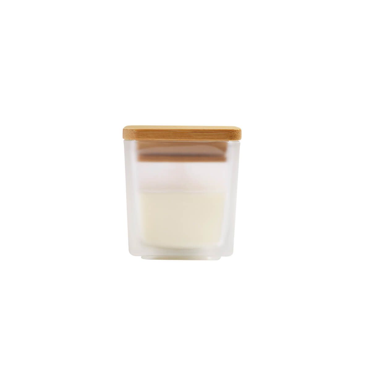 Vela decorativa cuadrada con tapa de bambú y acabado tipo frosty. Aroma a vainilla. El bambú es un producto natural el cual puede presentar variaciones en tonalidades y vetas.